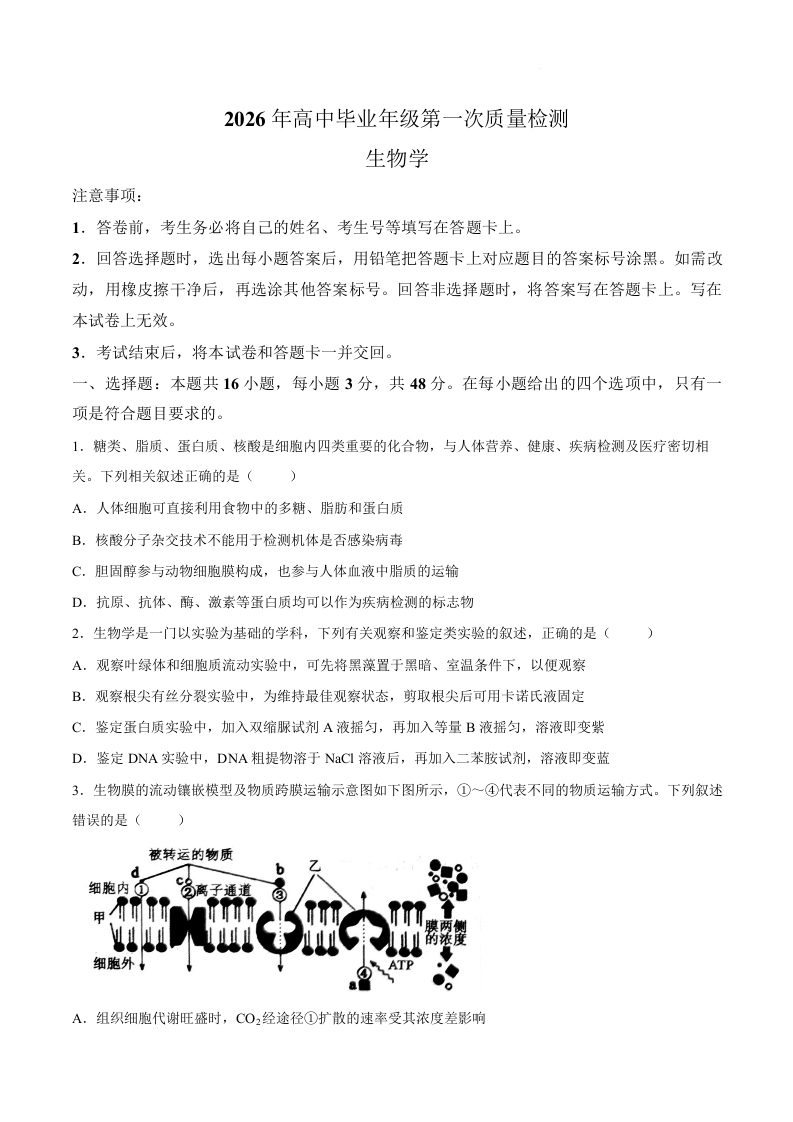 高三生物--河南省驻马店市、南阳市、信阳市2026届高三下学期3月质量检测