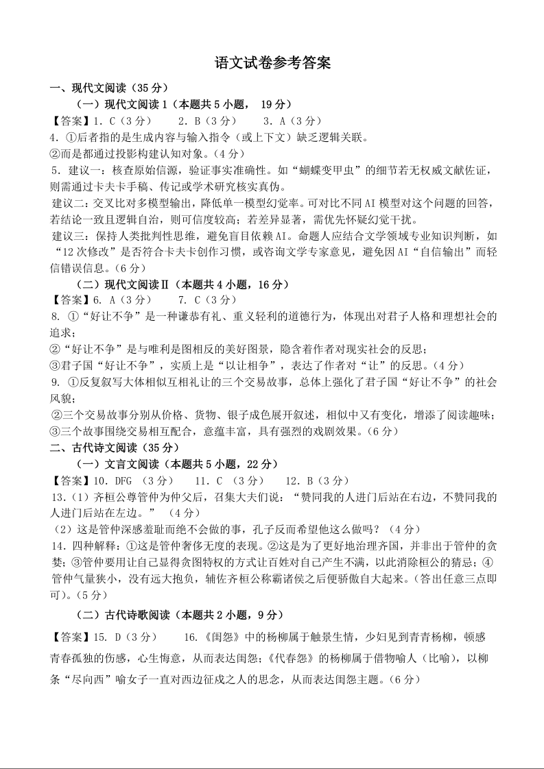 高三语文答案--安徽铜陵市2026届高三下学期第一次质检(铜陵一模)