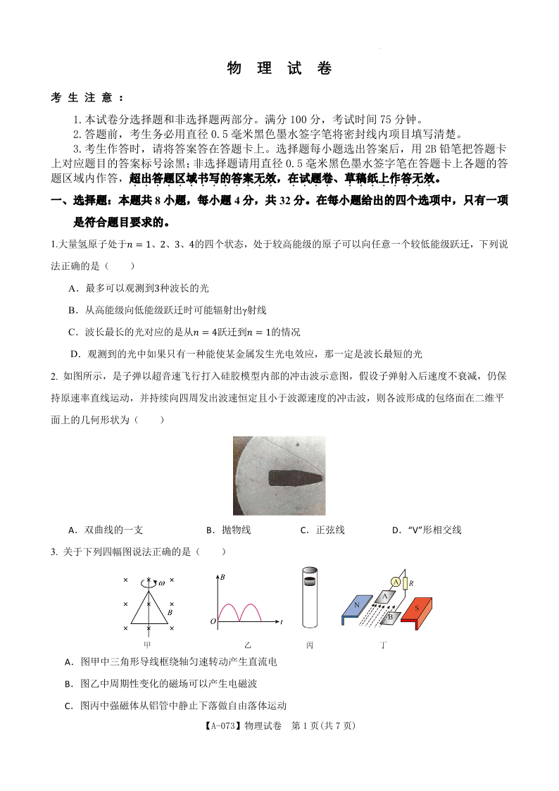 高三物理+答案--安徽铜陵市2026届高三下学期第一次质检(铜陵一模)