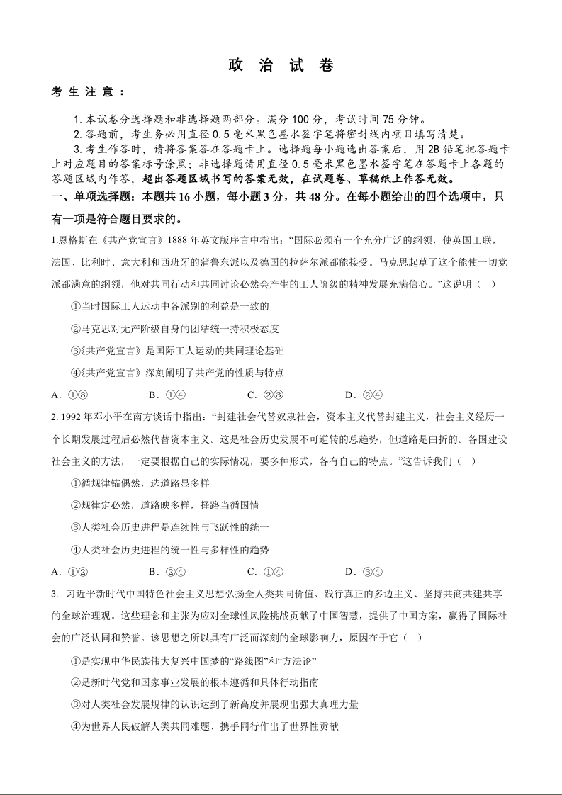 高三政治--安徽铜陵市2026届高三下学期第一次质检(铜陵一模)