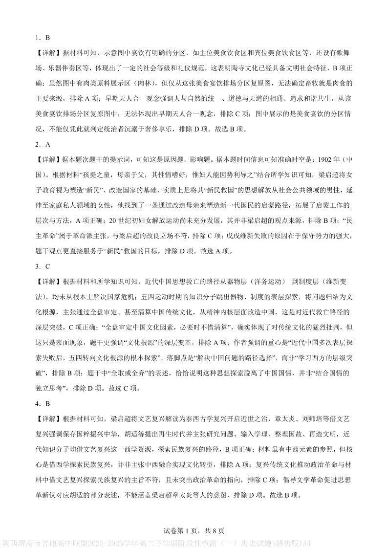 高二历史(解析版)--陕西省渭南市普通高中联盟2025-2026学年高二下学期3月阶段检测