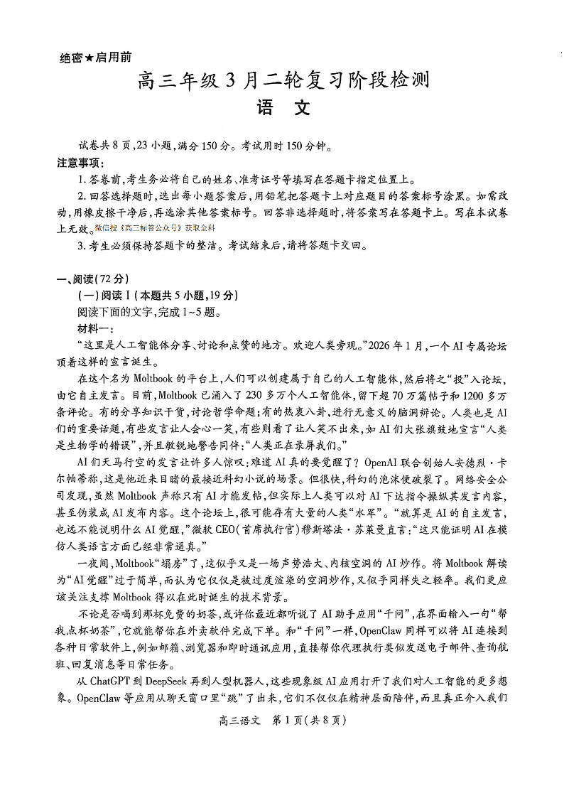 高三语文--江西广东省稳派智慧上进教育联考2026届高三下学期3月二轮复习阶段检测