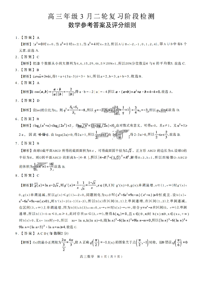 高三数学答案--江西广东省稳派智慧上进教育联考2026届高三下学期3月二轮复习阶段检测