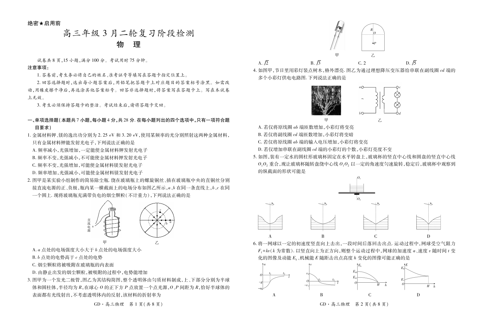 高三物理--江西广东省稳派智慧上进教育联考2026届高三下学期3月二轮复习阶段检测