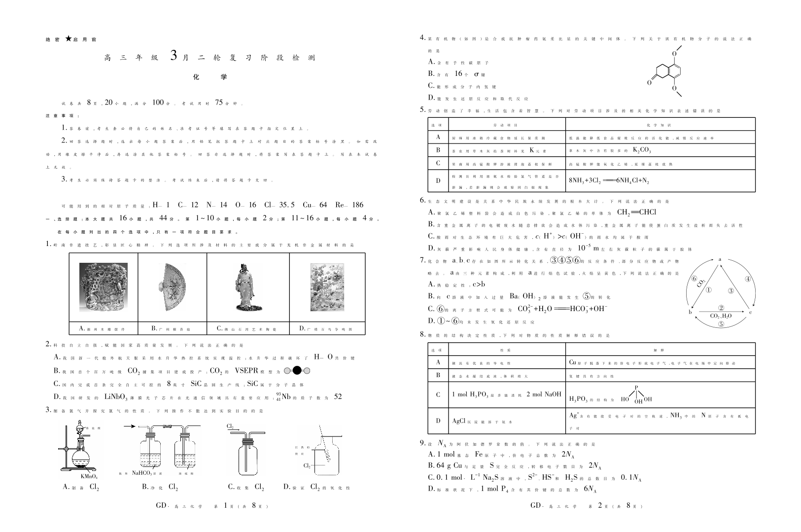 高三化学--江西广东省稳派智慧上进教育联考2026届高三下学期3月二轮复习阶段检测