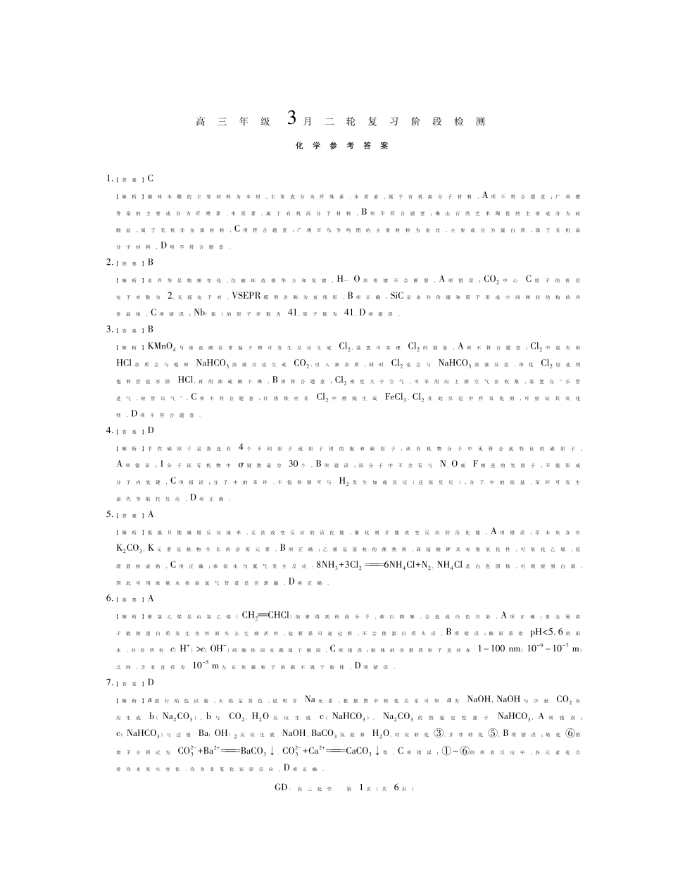 高三化学答案--江西广东省稳派智慧上进教育联考2026届高三下学期3月二轮复习阶段检测
