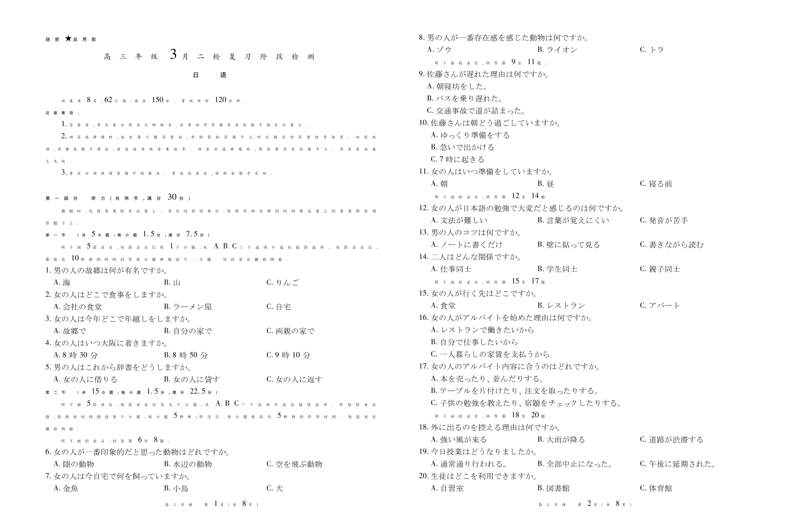 高三日语--江西广东省稳派智慧上进教育联考2026届高三下学期3月二轮复习阶段检测