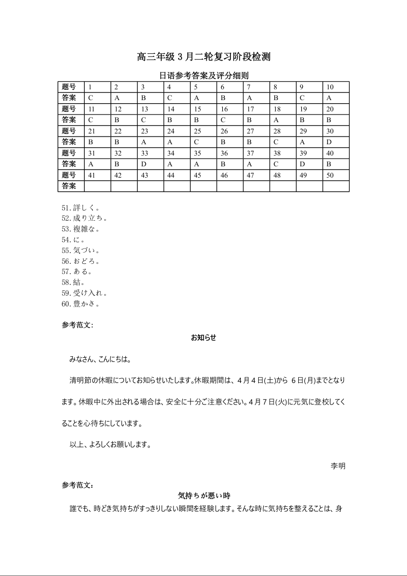 高三日语答案--江西广东省稳派智慧上进教育联考2026届高三下学期3月二轮复习阶段检测