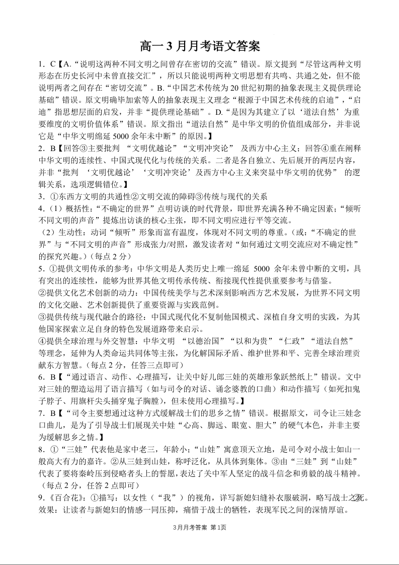 高一语文答案--湖北省荆州市荆州中学2025-2026学年高一下学期3月月考