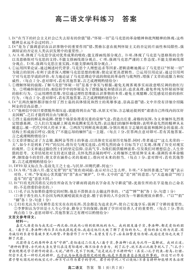 高二语文答案--浙江四校(含精诚联盟)2025-2026学年高二下学期3月阶段检测