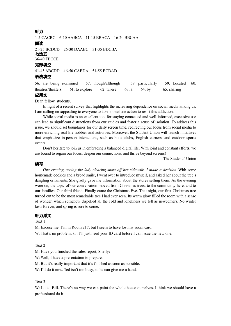 高一英语答案--浙江四校(含精诚联盟)2025-2026学年高一下学期3月阶段检测