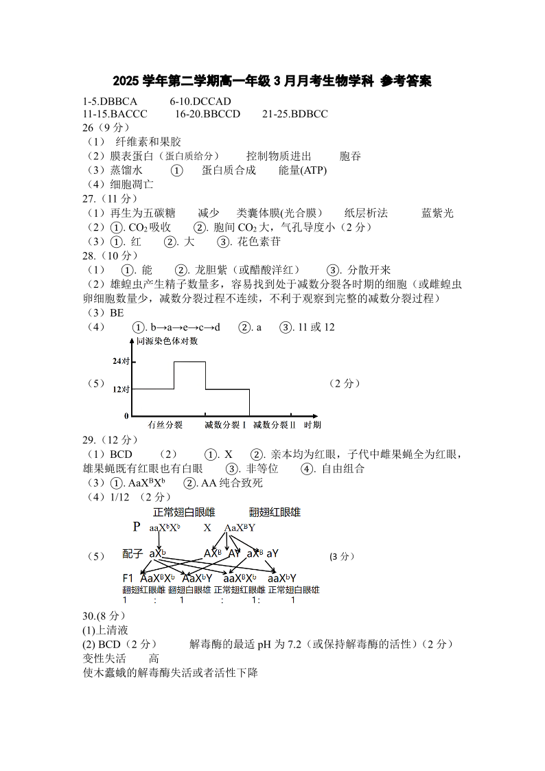 高一生物答案--浙江四校(含精诚联盟)2025-2026学年高一下学期3月阶段检测