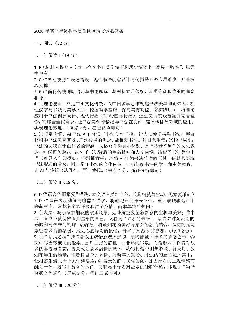 高三语文答案--宁夏银川市、石嘴山市、吴忠市三市2026届高三下学期3月学科教学质量检测