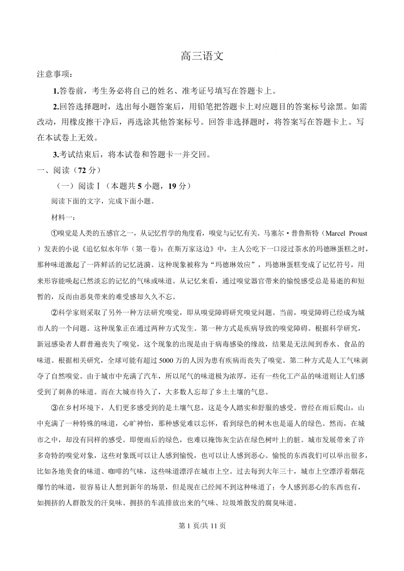 高三语文(原卷版)--湖南省长沙市第一中学2026届高三下学期3月阶段检测(月考八)