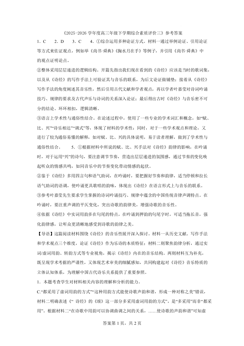 高三语文答案--河北省衡水中学2026届高三下学期综合素质评价(三)