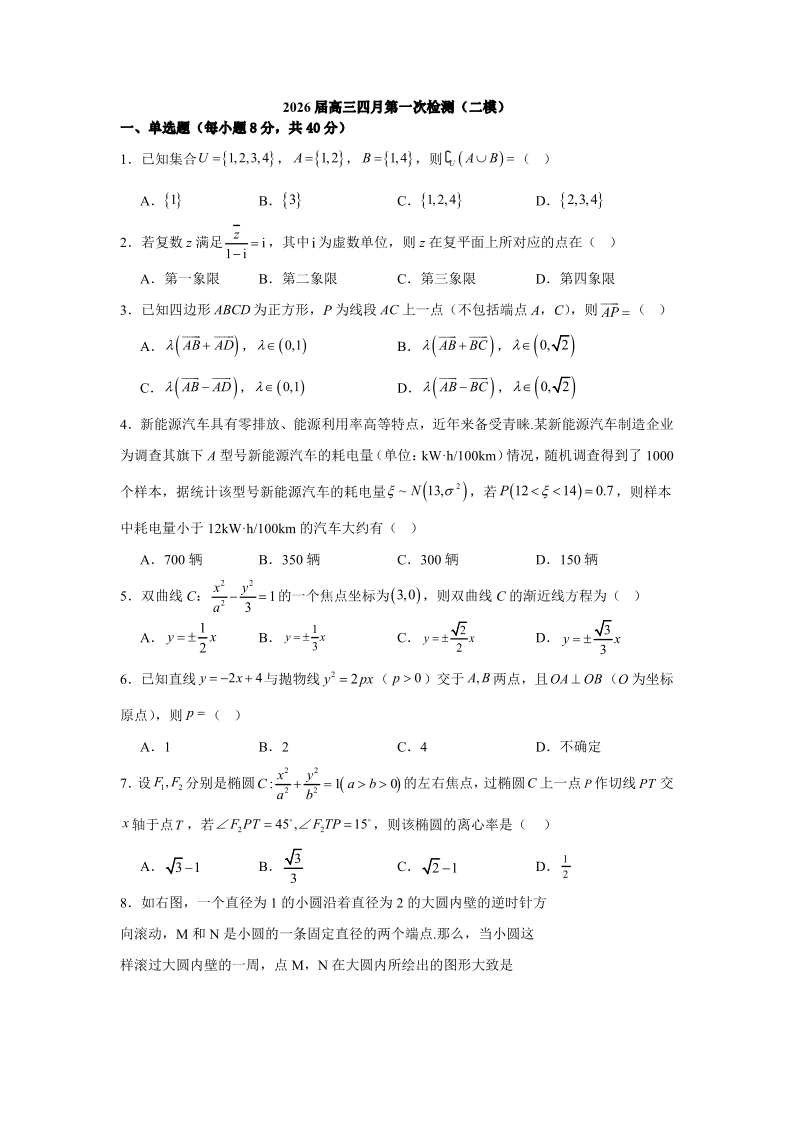 高三数学--江苏省南京市第六十六中学2026届高三四月第一次检测(二模)