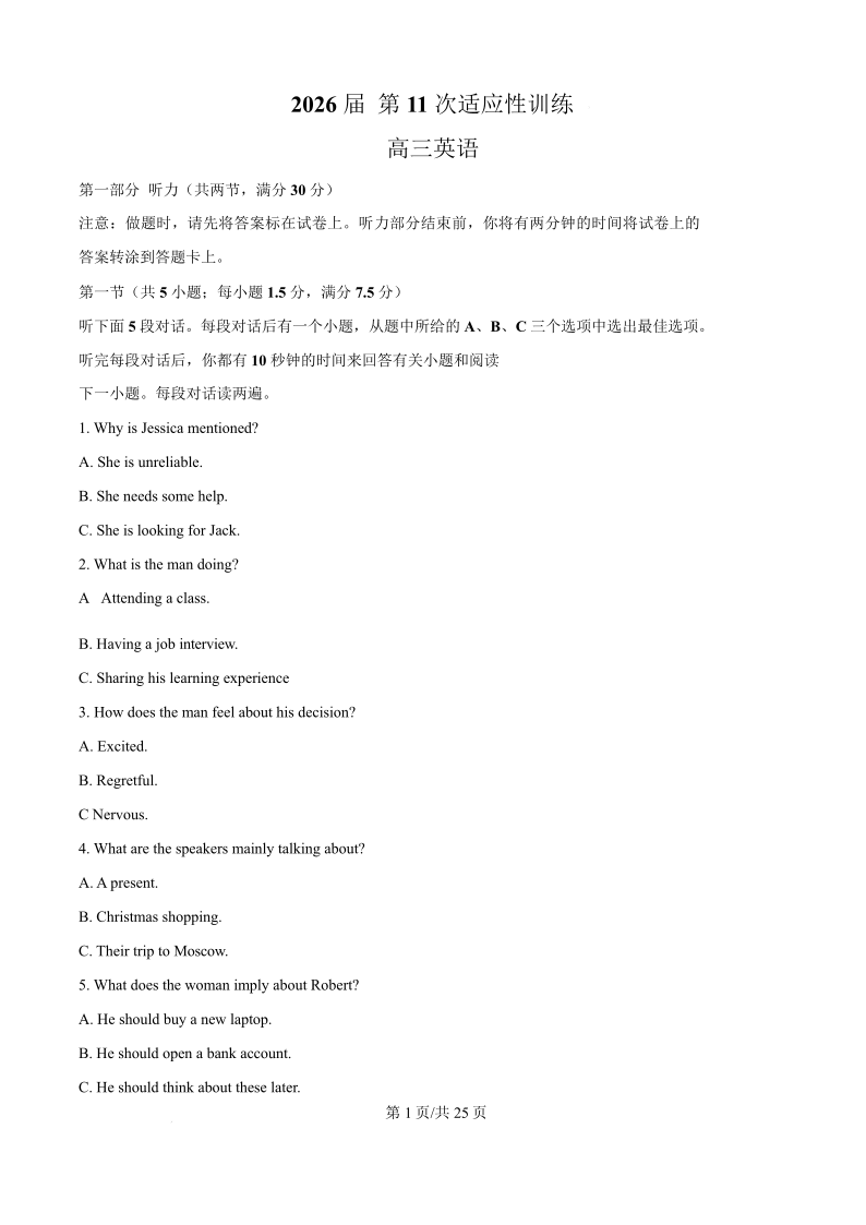 高三英语+答案--陕西省西北工业大学附属中学2026届高三下学期第十一次适应性训练
