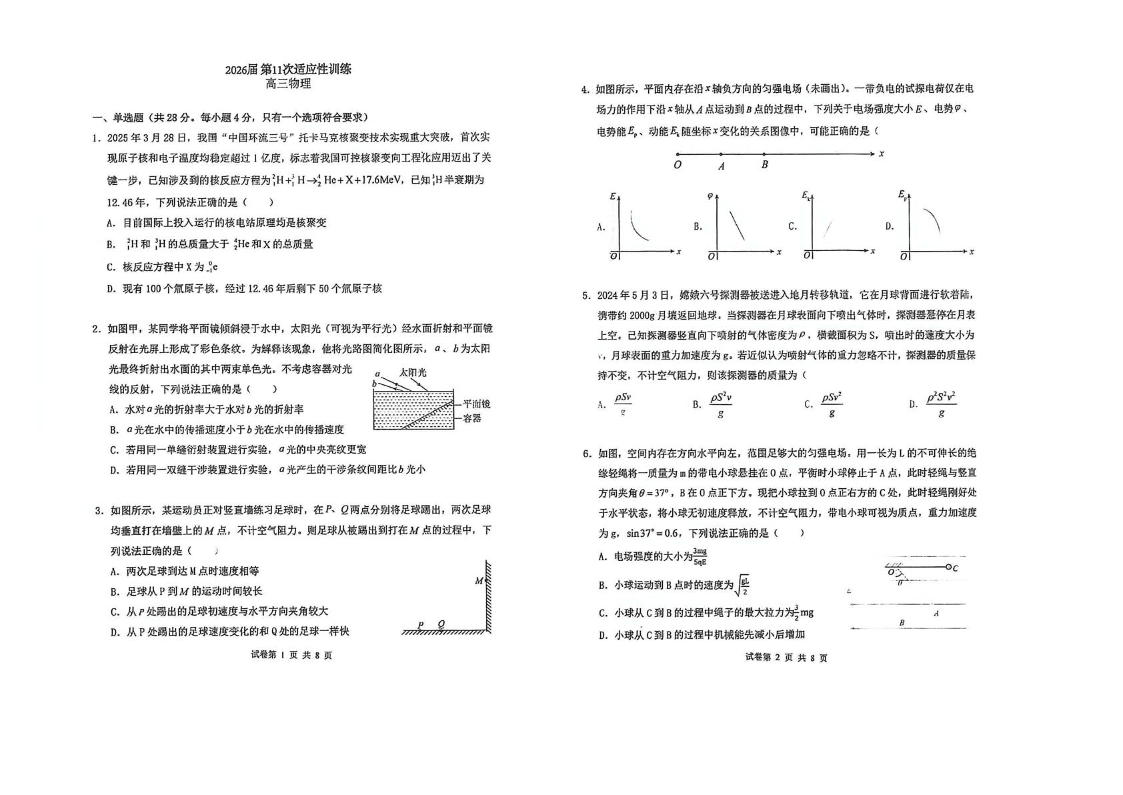 高三物理+答案--陕西省西北工业大学附属中学2026届高三下学期第十一次适应性训练
