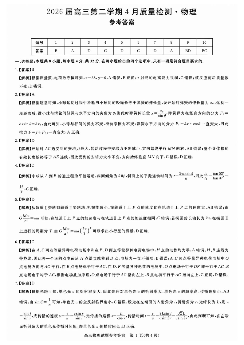 高三物理答案--安徽华师联盟2026届高三第二学期4月质量检测