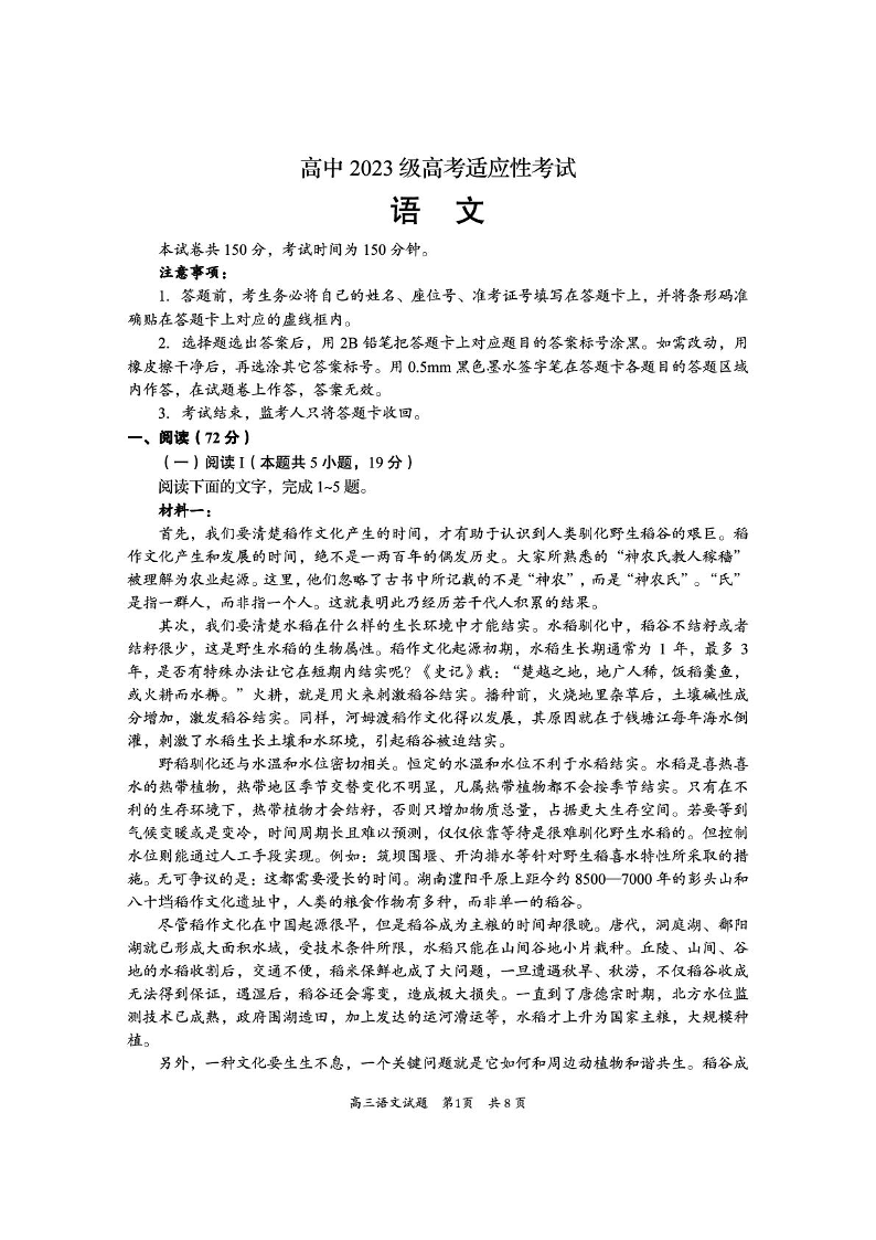 高三语文--四川省资阳市2026届高三下学期4月高考适应性考试