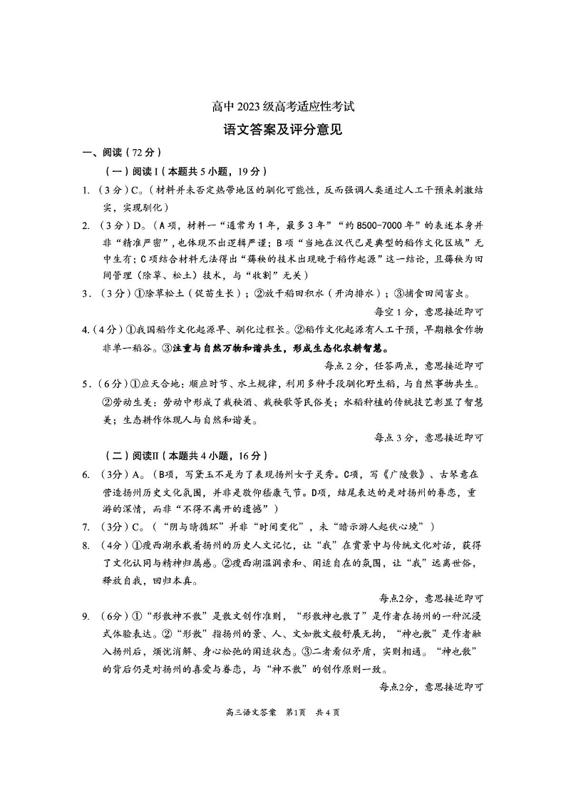 高三语文答案--四川省资阳市2026届高三下学期4月高考适应性考试