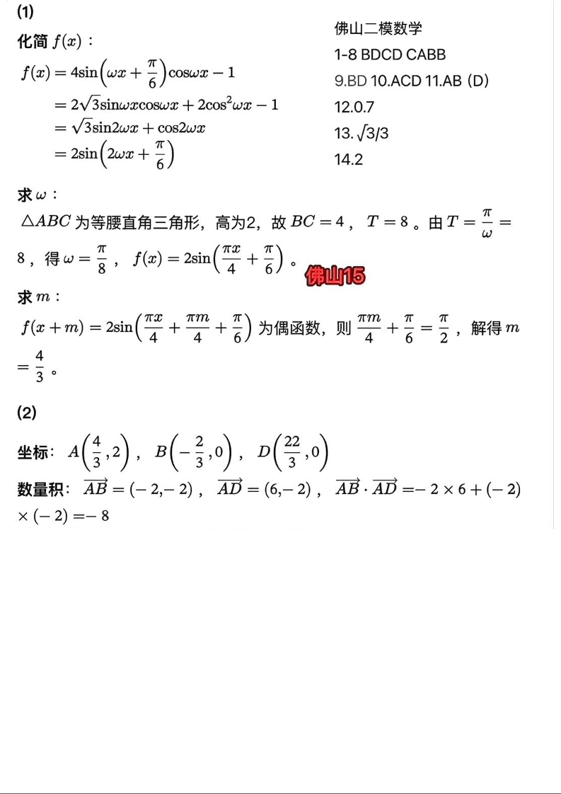高三数学答案--广东省佛山市2026届高三普通高中教学质量检测(二)(佛山二模)