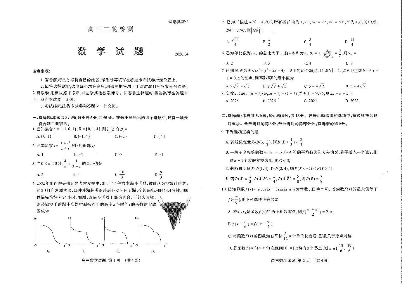 高三数学--山东省泰安市2026届高三下学期4月二轮检测(泰安二模)