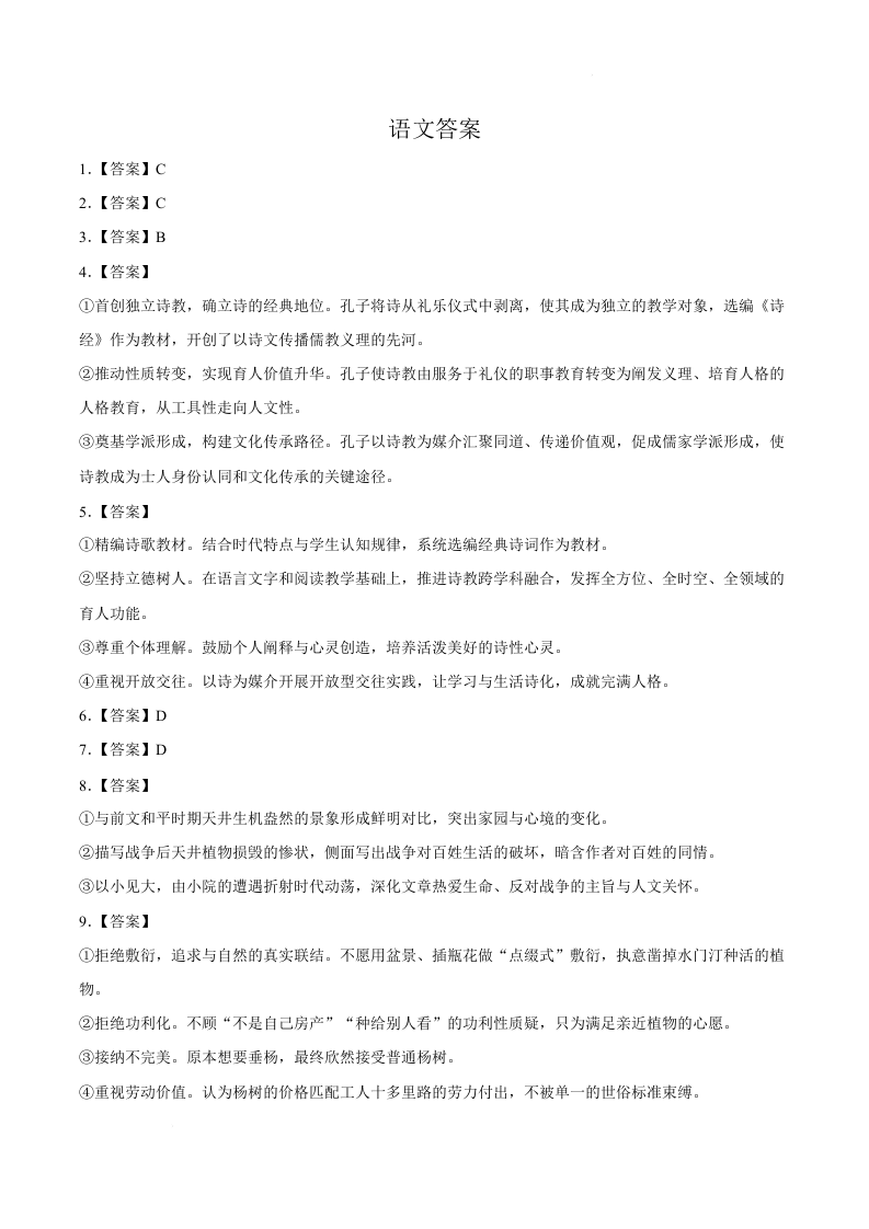 高三语文答案--黑龙江省大庆市2026届高三第三次教学质量检测