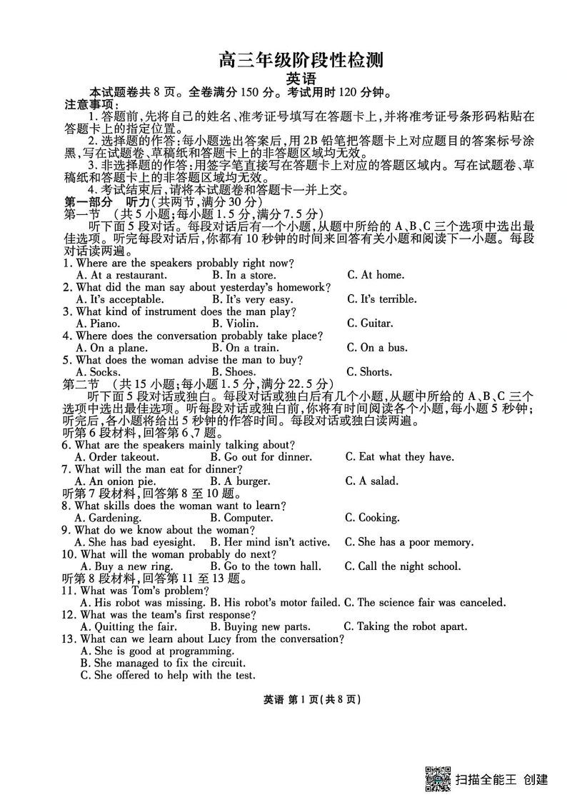 高三英语--陕西省2026届高三衡水金卷4月联考(安康阶段性检测)