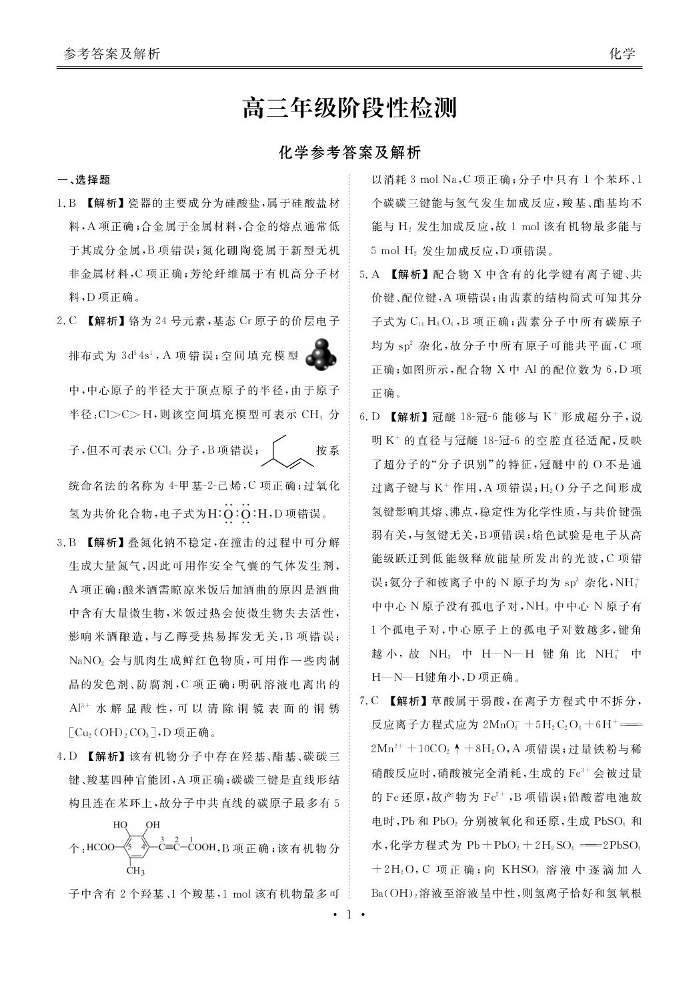 高三化学答案--陕西省2026届高三衡水金卷4月联考(安康阶段性检测)