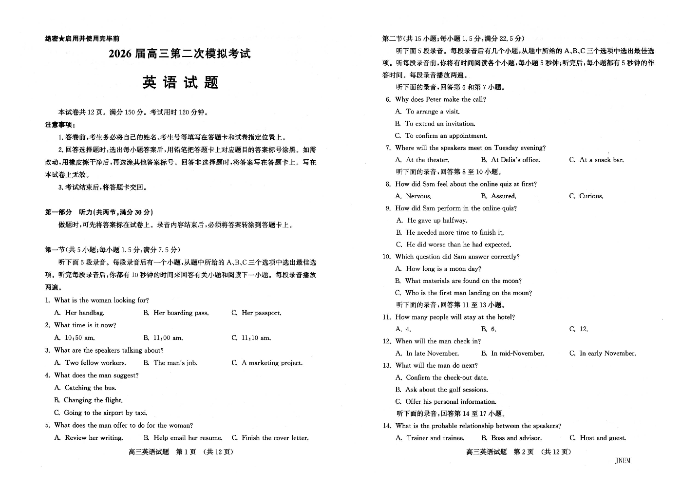 英语试题--山东省济南市2026届高三第二次模拟考试