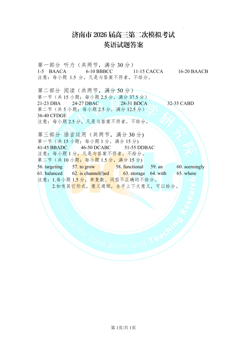 英语答案--山东省济南市2026届高三第二次模拟考试