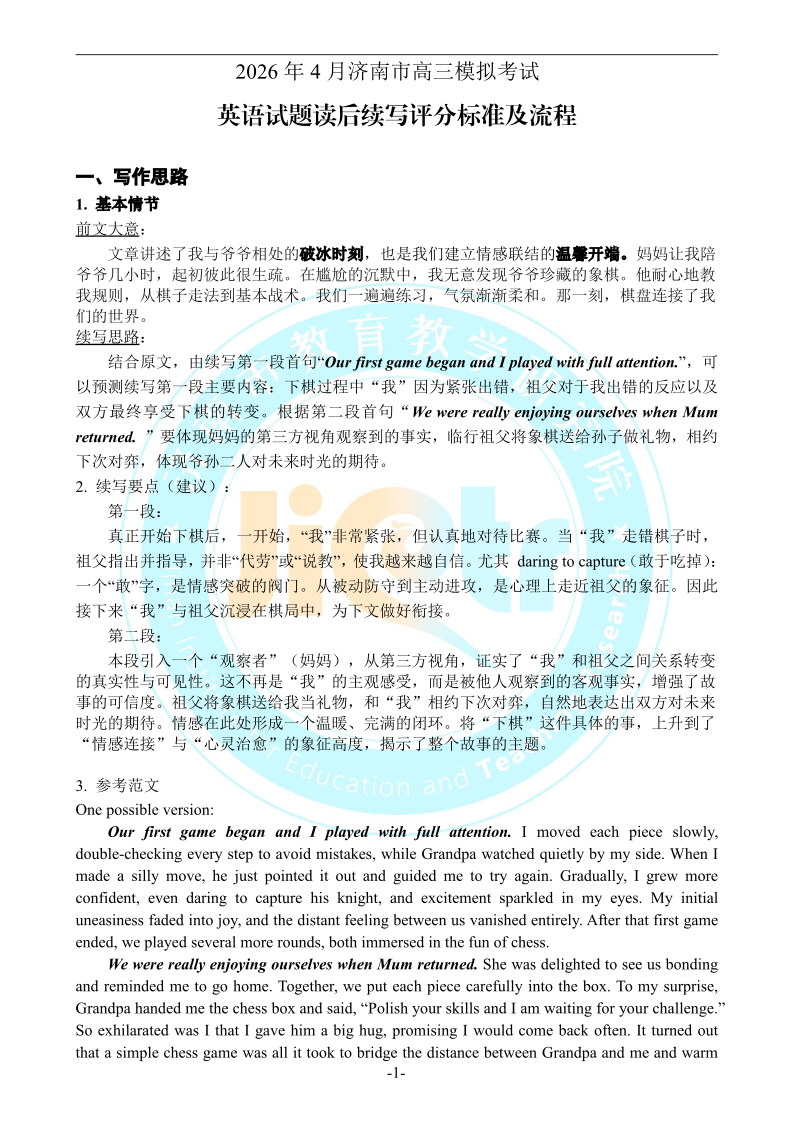 英语续写评分标准--山东省济南市2026届高三第二次模拟考试