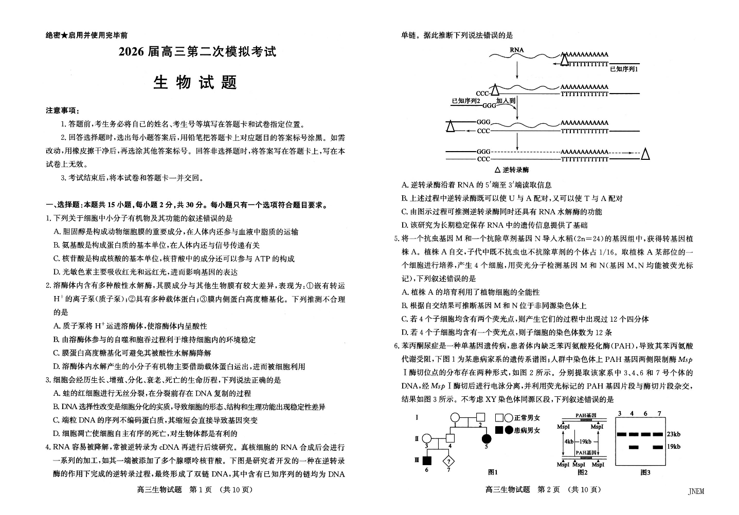 生物试题--山东省济南市2026届高三第二次模拟考试