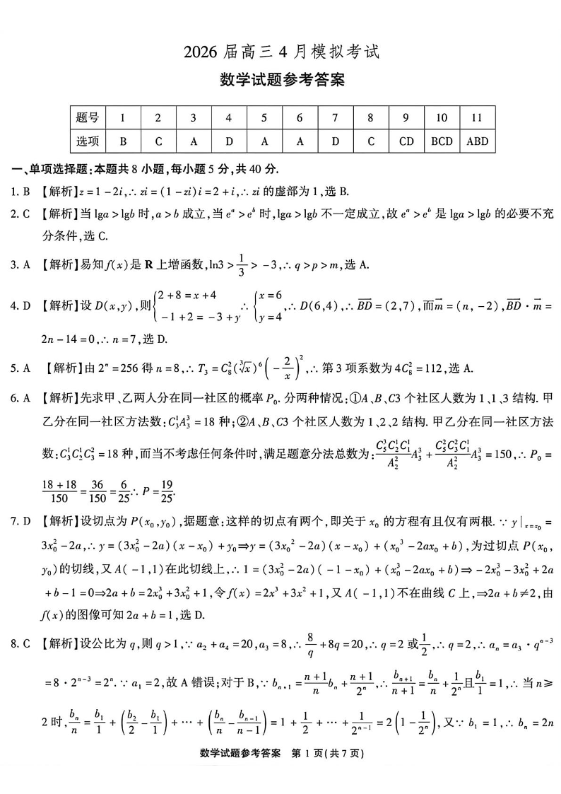 高三数学答案--安徽省江淮十校2026届高三下学期4月模拟考试(安庆市高三三模)