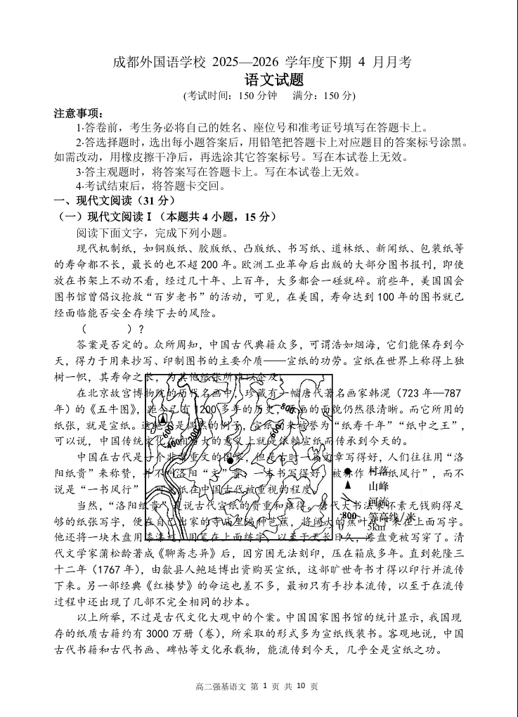 高二语文--四川省成都外国语学校2025-2026学年高二下学期4月月考