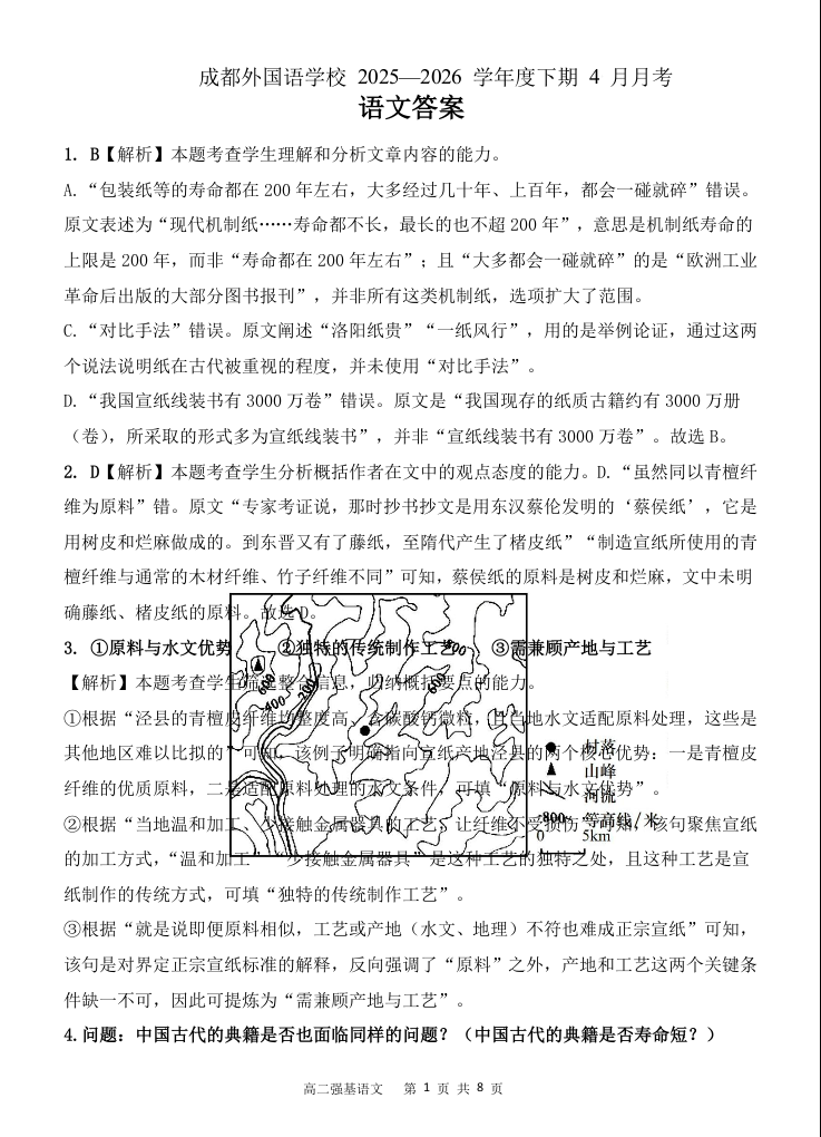 高二语文答案--四川省成都外国语学校2025-2026学年高二下学期4月月考
