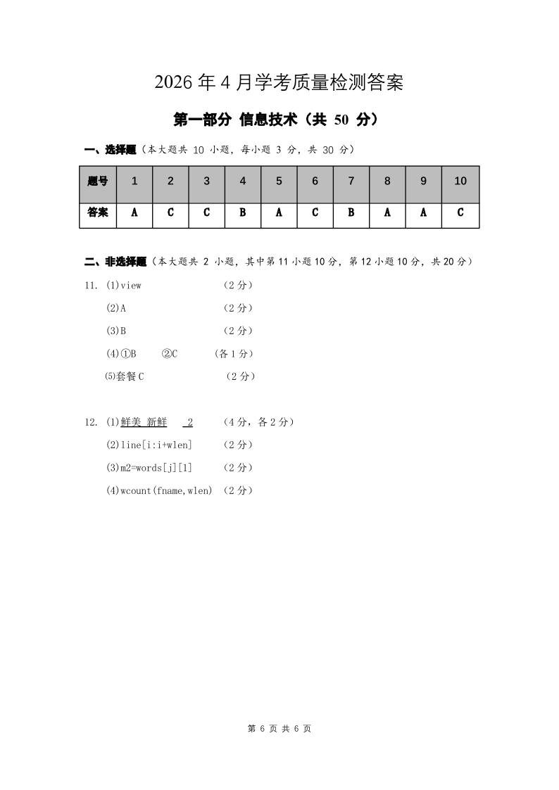 高二信息技术答案--浙江省余姚中学2025-2026学年高二下学期4月质量检测