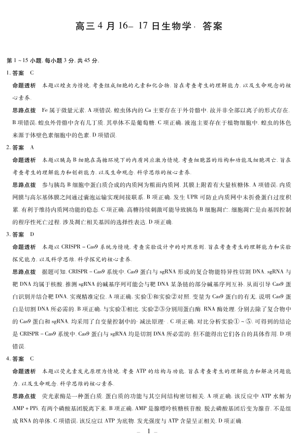 高三生物答案--安徽省合肥市第六中学等学校2026届高三4月联考