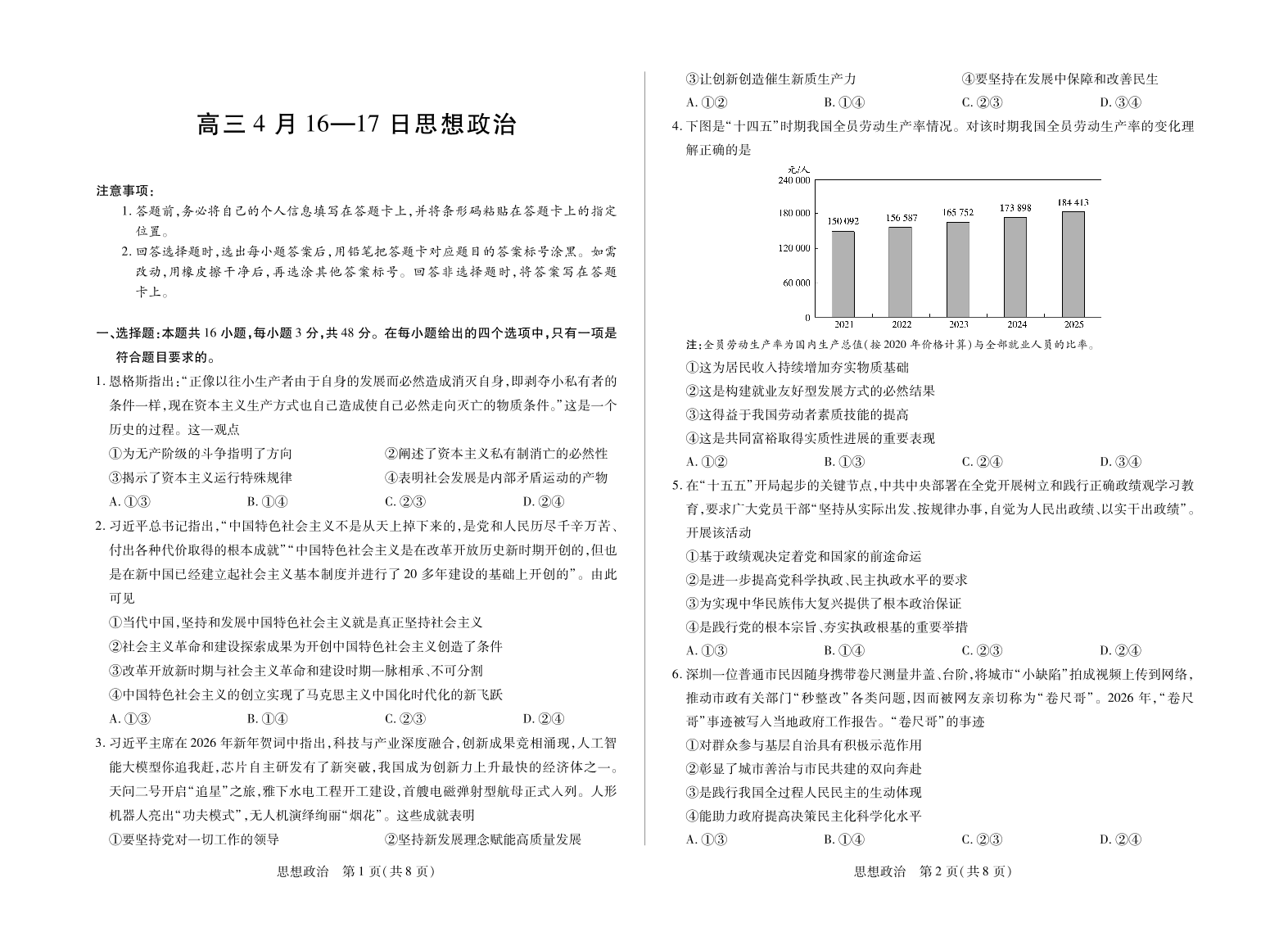 高三政治--安徽省合肥市第六中学等学校2026届高三4月联考