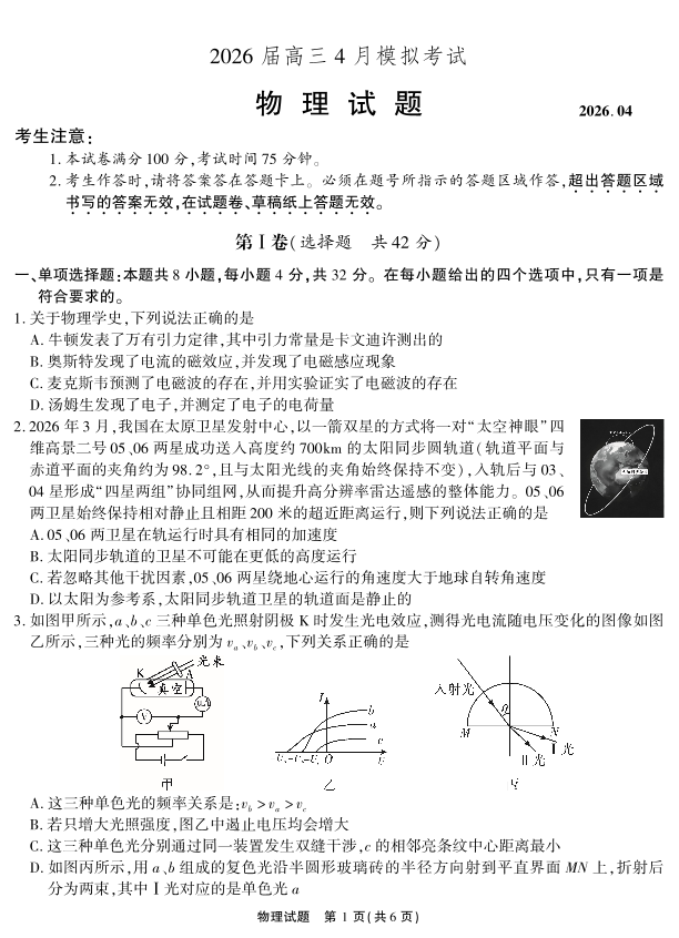 高三物理--安徽省江淮十校2026届高三下学期4月模拟考试(安庆市高三三模)