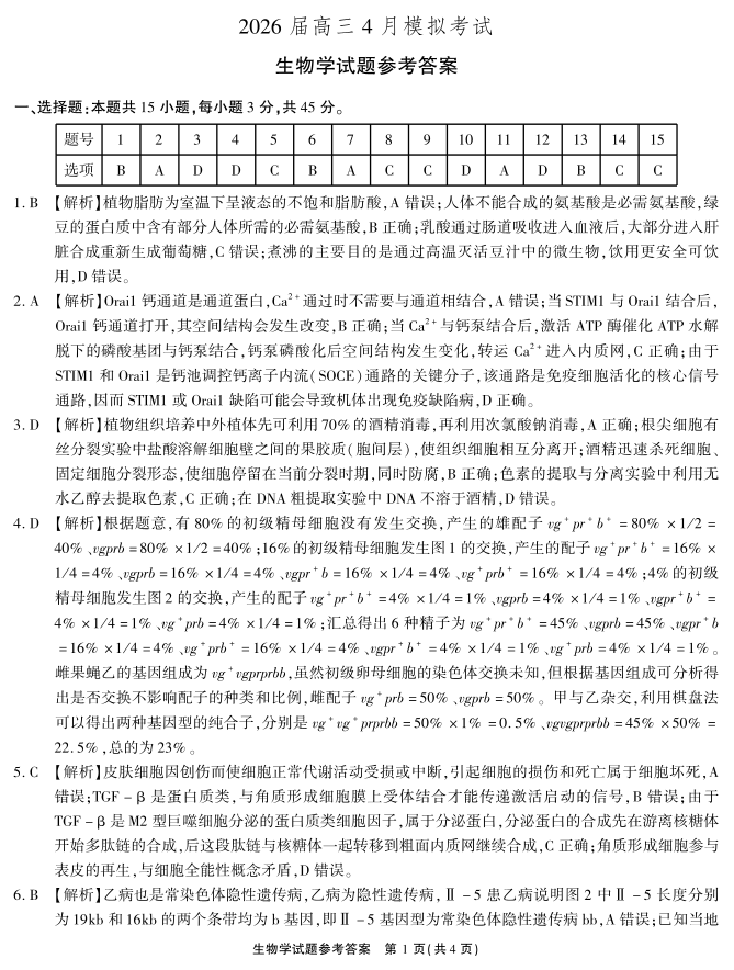 高三生物答案--安徽省江淮十校2026届高三下学期4月模拟考试(安庆市高三三模)