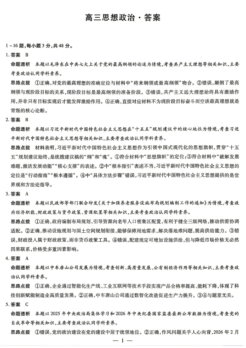 高三政治答案--湖南省、广西壮族自治区天一大联考2026届高三4月大联考