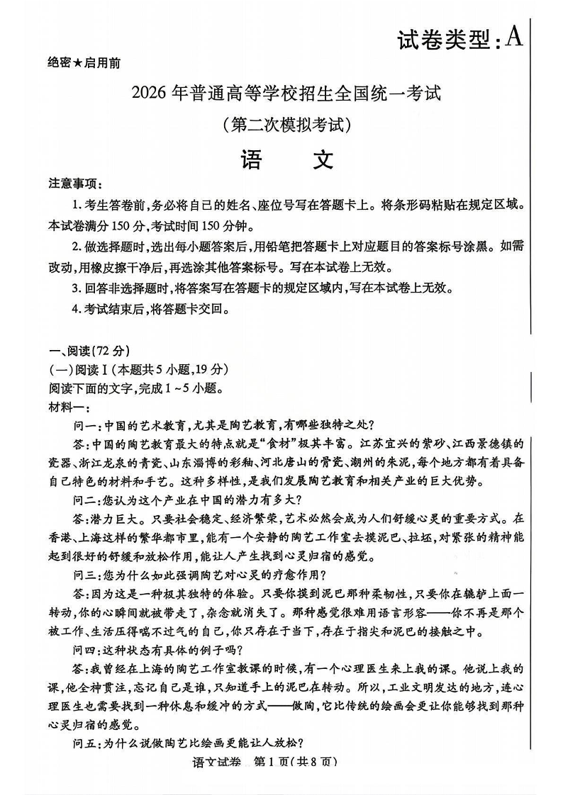高三语文--内蒙古包头市2026届高三下学期二模考试(包头二模)