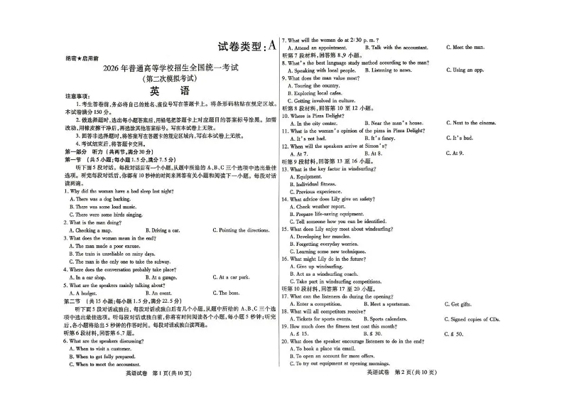 高三英语--内蒙古包头市2026届高三下学期二模考试(包头二模)