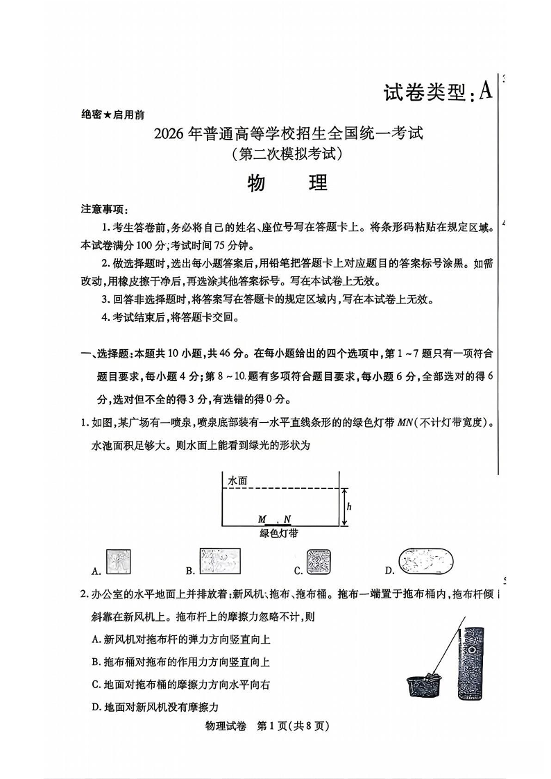 高三物理--内蒙古包头市2026届高三下学期二模考试(包头二模)