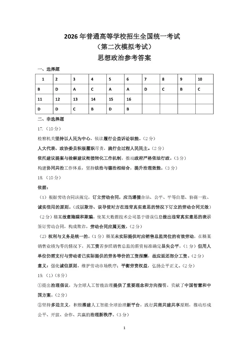 高三政治答案--内蒙古包头市2026届高三下学期二模考试(包头二模)