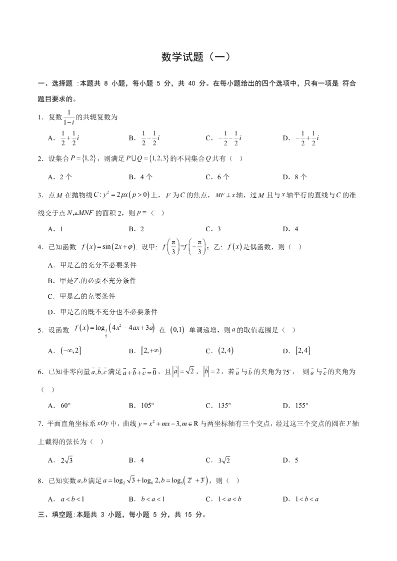 高三数学--重庆市第八中学2026届高三强化训练(一)