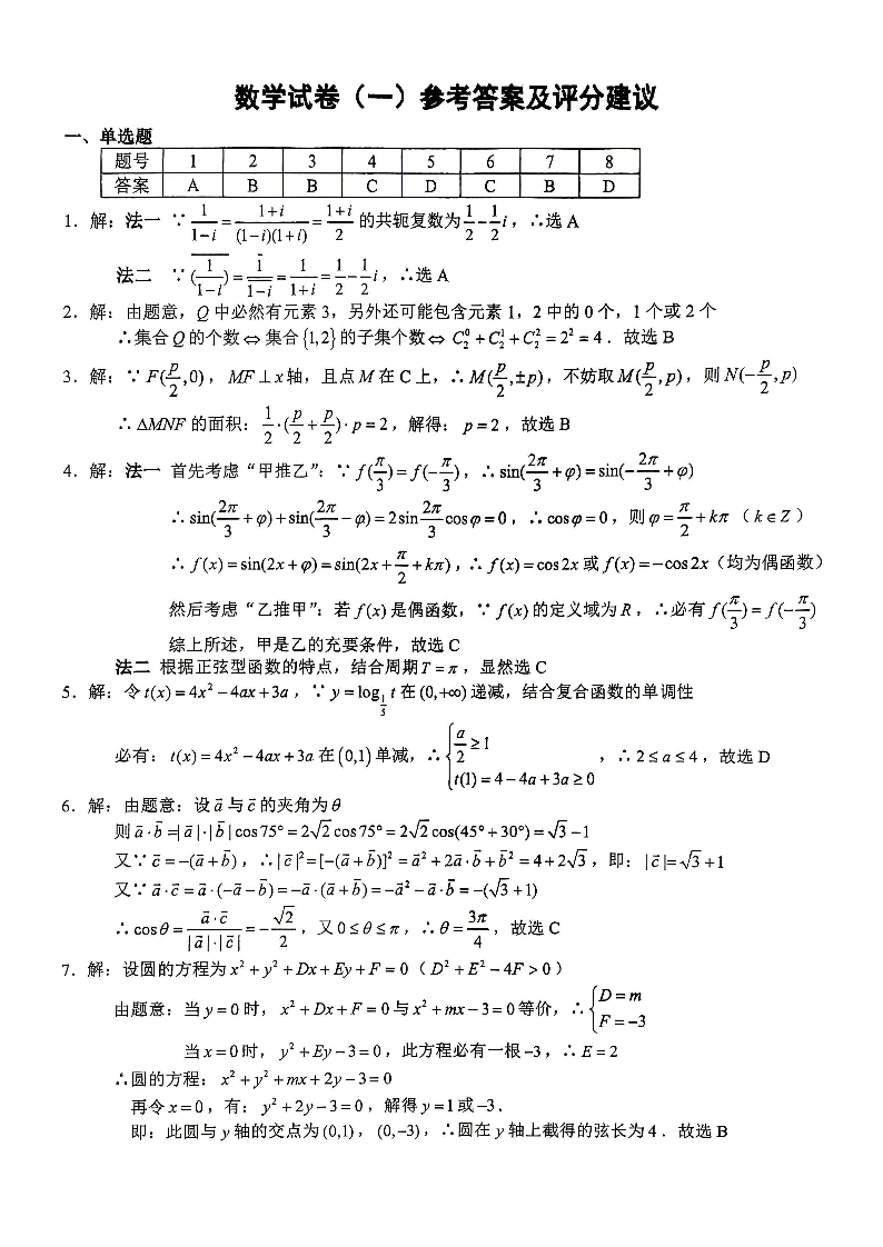 高三数学答案--重庆市第八中学2026届高三强化训练(一)