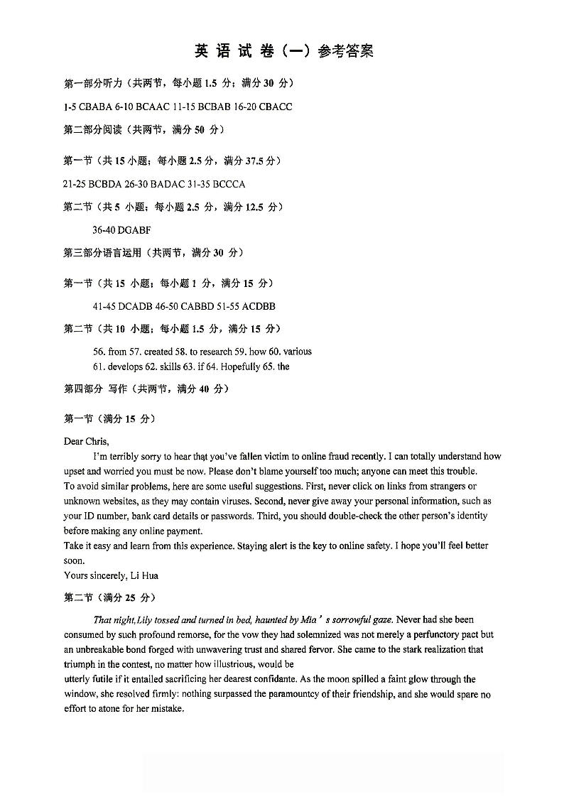 高三英语答案--重庆市第八中学2026届高三强化训练(一)